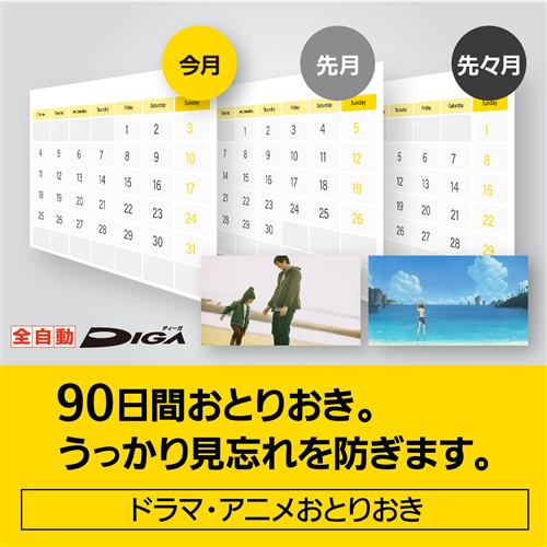 見たい番組が重なっても4K画質で両方録れる。さらに「4Kおまかせ長時間“8~12倍録”モード」搭載。