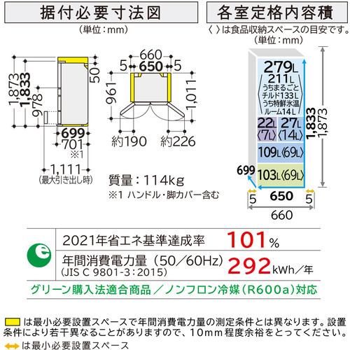 冷蔵室内容量:279L