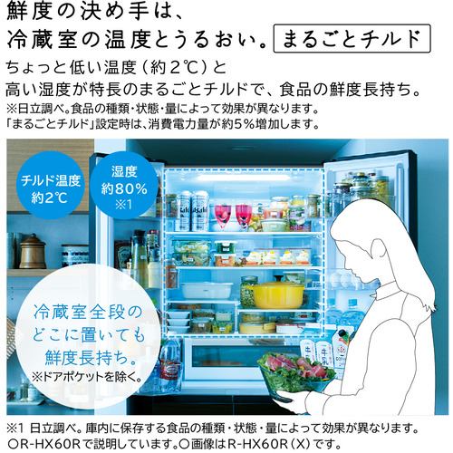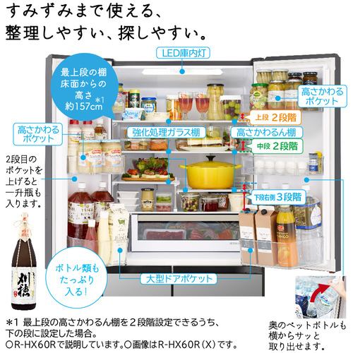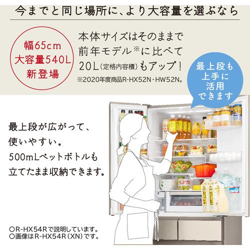 日立 R-HW54R XW 6ドア冷蔵庫 HWタイプ (540L・フレンチドア) クリスタルホワイト