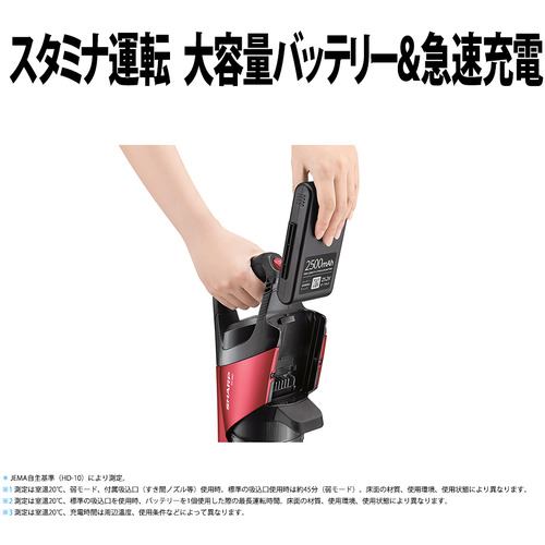 ※3測定は室温20℃、弱モード、付属吸込口(すき間ノズル等)使用時、バッテリーを1個使用した際の最長運転時間。標準の吸込口使用時は約45分(弱モード)。床面の材質、使用環境、使用状態により異なります。