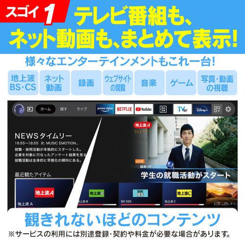 テレビも 動画もシンプルに 観たいが集まったホーム画面