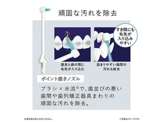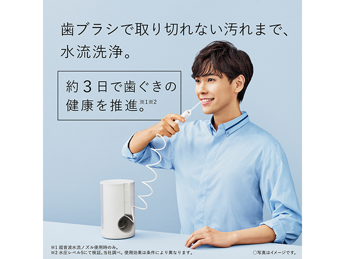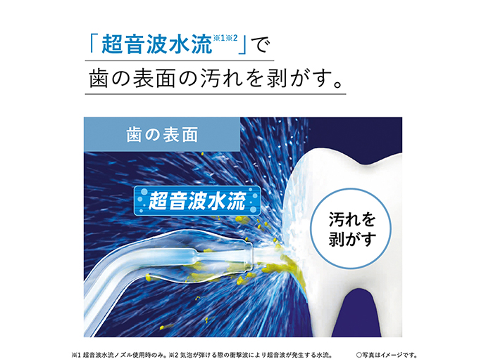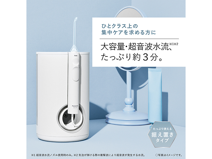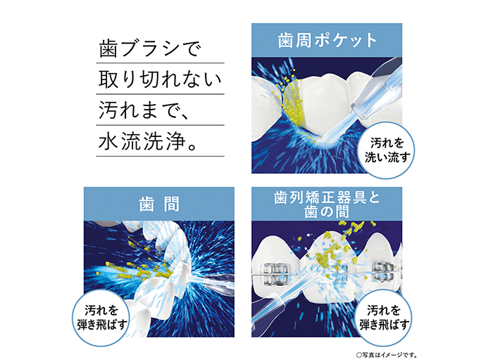 歯ブラシで取り切れない、歯周ポケット・歯間の汚れまで水流洗浄。たっぷり使える大容量、据え置きタイプ。