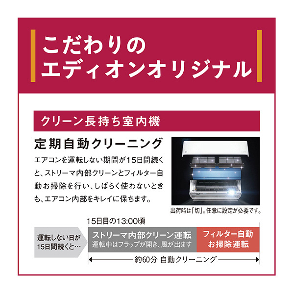 ●「定期自動クリーニング」エアコン運転しない期間もエアコン内部を清潔に保つ。