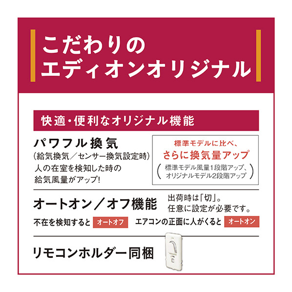 ●「パワフル換気(センサー換気時)」人を検知すると換気量をアップ。通常モデルに比べさらにパワフルに換気。