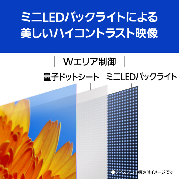 ●ミニLEDバックライト液晶と量子ドットシートで明るく高コントラストかつ色あざやかな映像を実現。