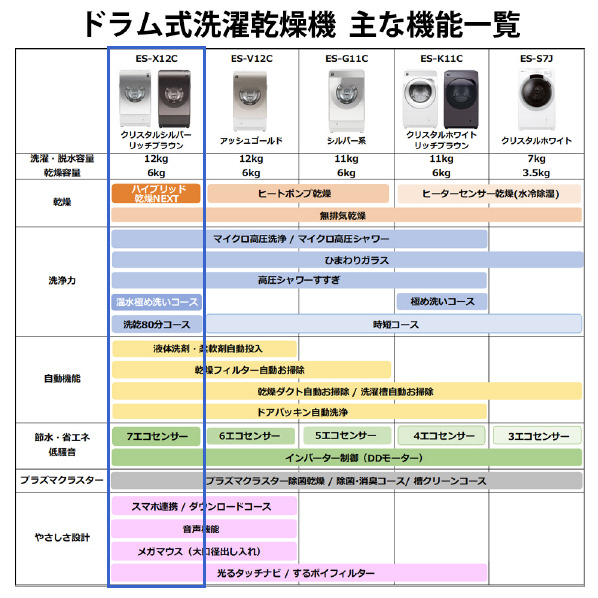 シャープ 【右開き】12.0kgドラム式洗濯乾燥機 クリスタルシルバー ES-X12C-SR