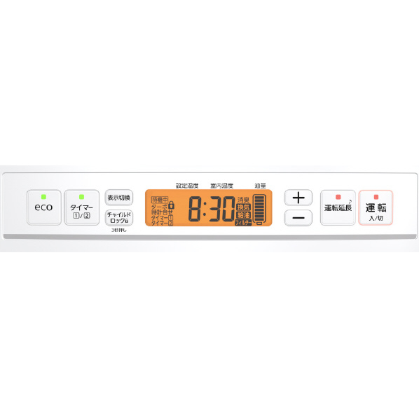 ・灯油の残量を、細かく8段階でお知らせ。 急な油切れの前に、余裕をもって給油できます。